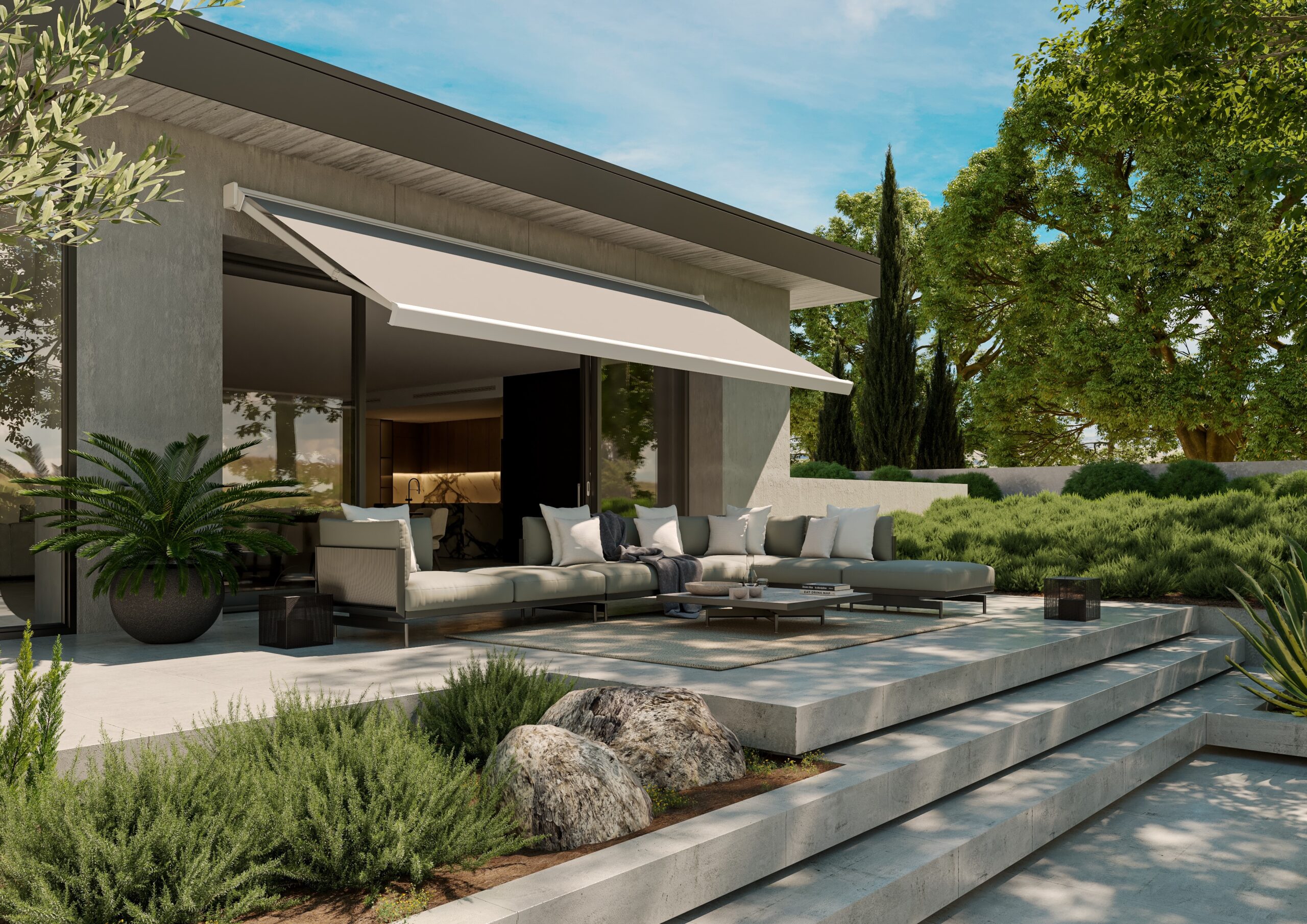 BASE Q MAX segna un ulteriore passo avanti per la linea BASE. Riprendendo il design squadrato e le geometrie armoniose dei modelli precedenti, è pensato per coprire superfici più ampie.: fino a 6 metri di larghezza e 3,10 metri di sporgenza.