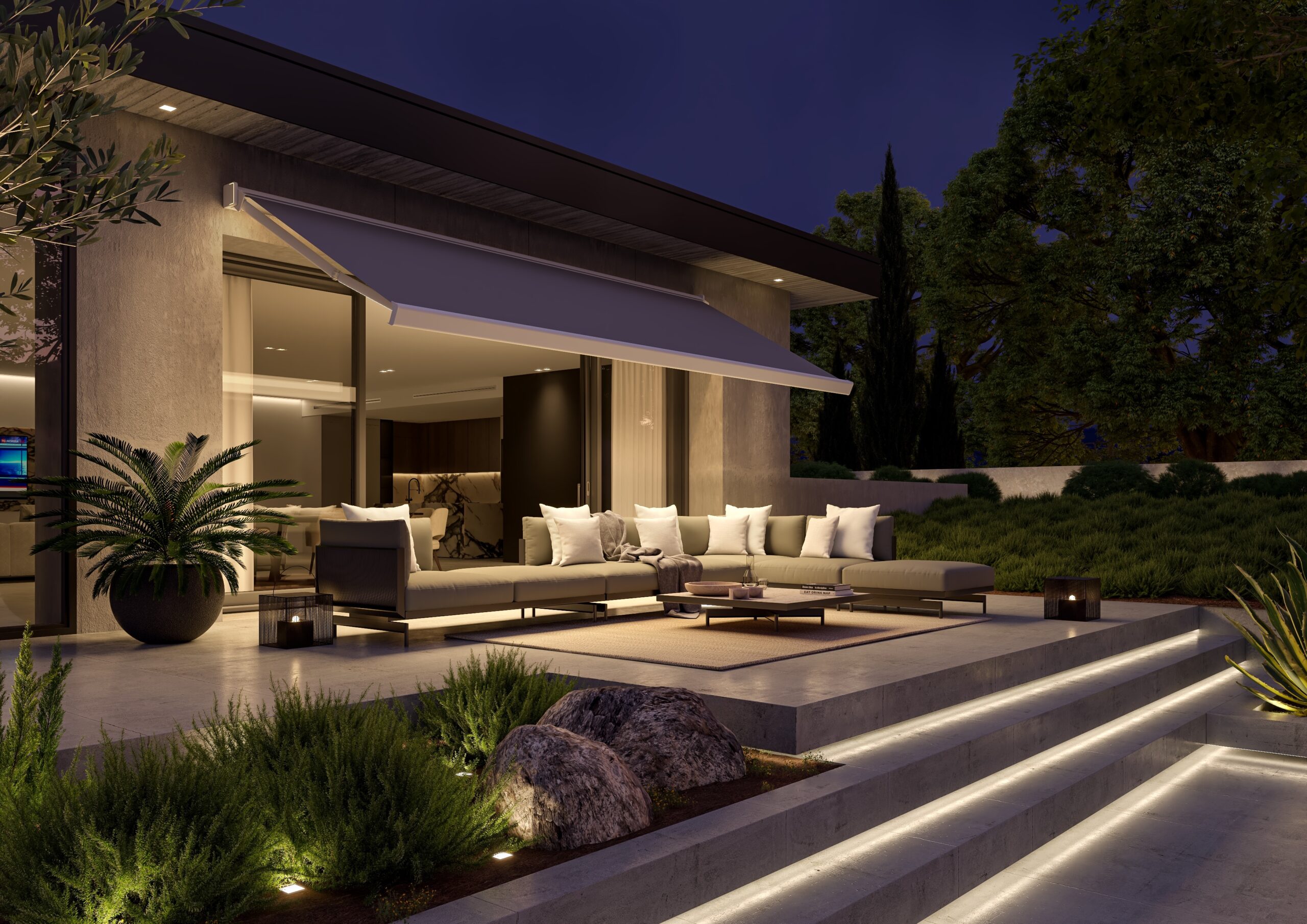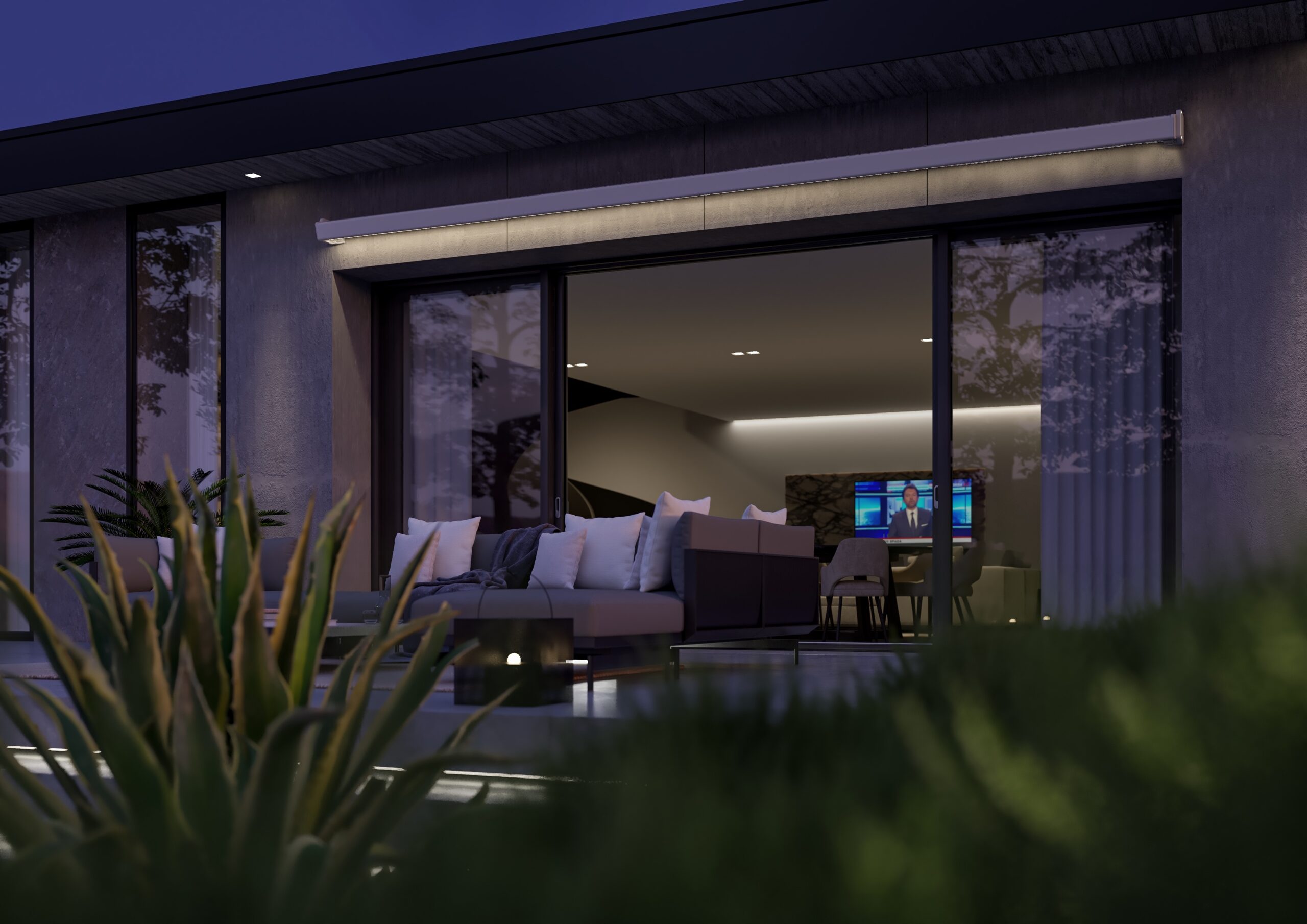 Elemento distintivo di BASE Q MAX è la possibilità di integrare un sistema di illuminazione a LED dimmerabili nel supporto del cassonetto, che crea un raffinato effetto luce perimetrale. Questa opzione, disponibile anche su cassonetto e bracci, trasforma la tenda in un elemento di design capace di valorizzare gli spazi outdoor anche nelle ore serali. BASE Q MAX è compatibile con i bracci LED Balteus e disponibile in versioni motorizzate o manuali.